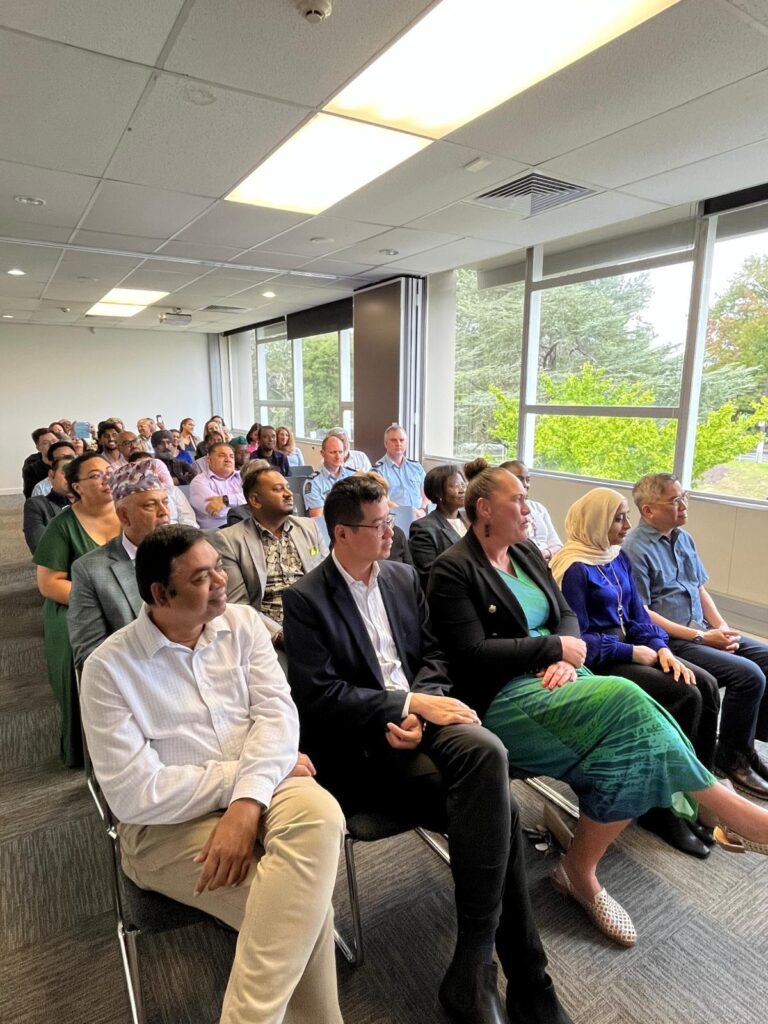– 48/50 seats packed with leaders from across Tāmaki Makaurau: Carmel Sepuloni MP, Carlos Cheung MP, Paulo Garcia MP + Local Board members, govt reps, Consulate General of India Dr Madan Mohan Sethi, Hon Consul of Nepal Dinesh Khadka and ethnic community champions.
